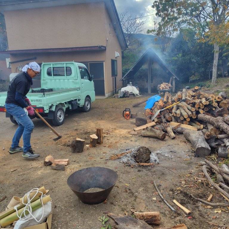 炭焼きでは都内からの見学者さんも見え、一緒に薪割りをしたりと究極の田舎暮らしに興味を持っていただけさらにやる気スイッチが入ります!