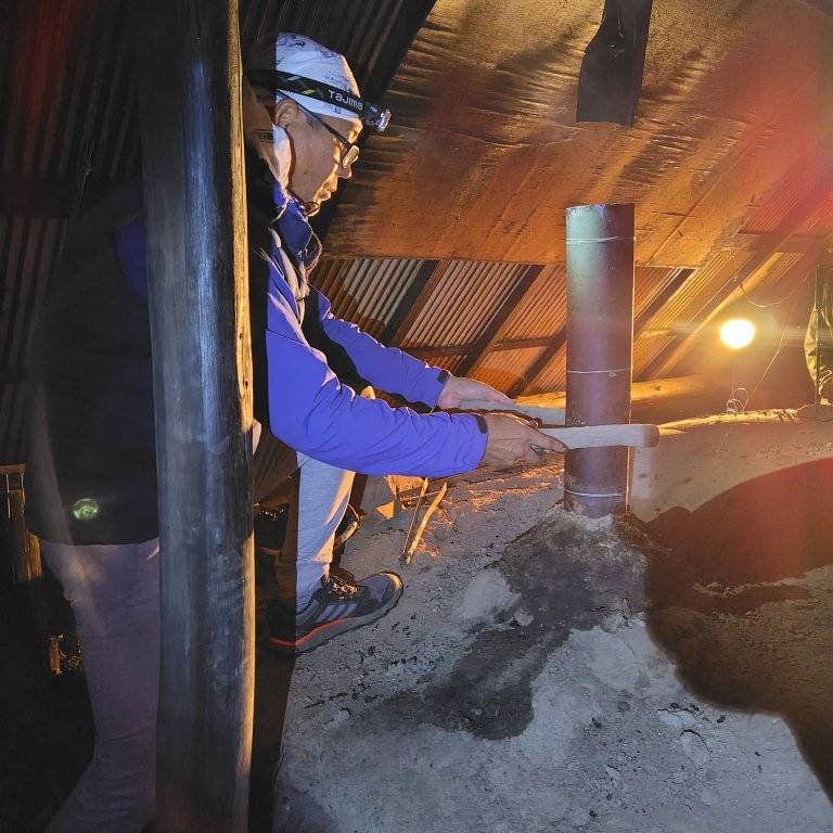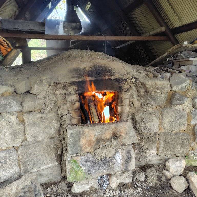 普段の生活環境とは異なる風景に癒されたようでハンモックでひと休みしながら丁寧に工程を進まれました。800度近くと高温になる窯が冷めるまで待ち、窯出しするまで後少し。どんな炭に出会えるか楽しみ