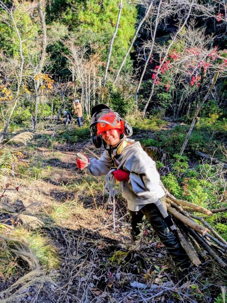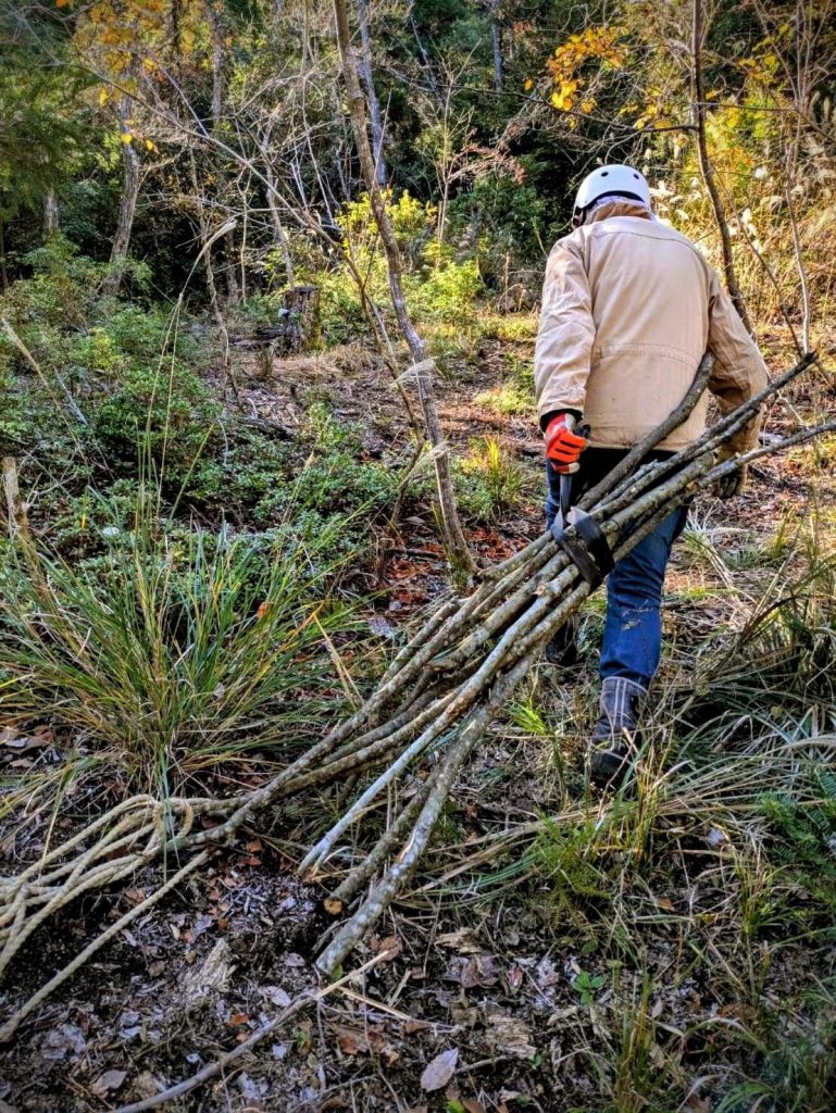 本日は炭焼き体験を予定されているシマザキさんが「炭木作りから参加する!」とのことで一緒に山へ向かいました。