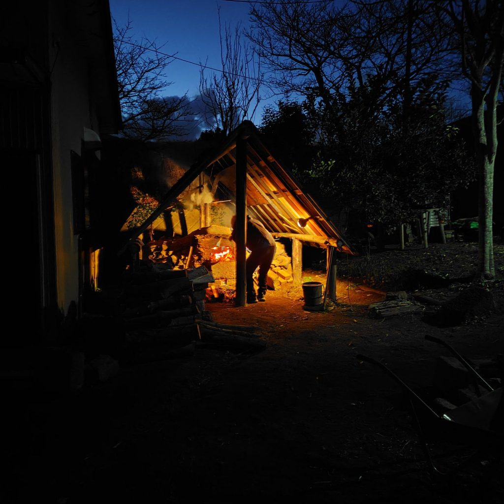 止め窯が終わると21時になっていましたが、タカノさんと薪割りをしたり炭の効果や可能性について熱く語りとても貴重な時間となりました。