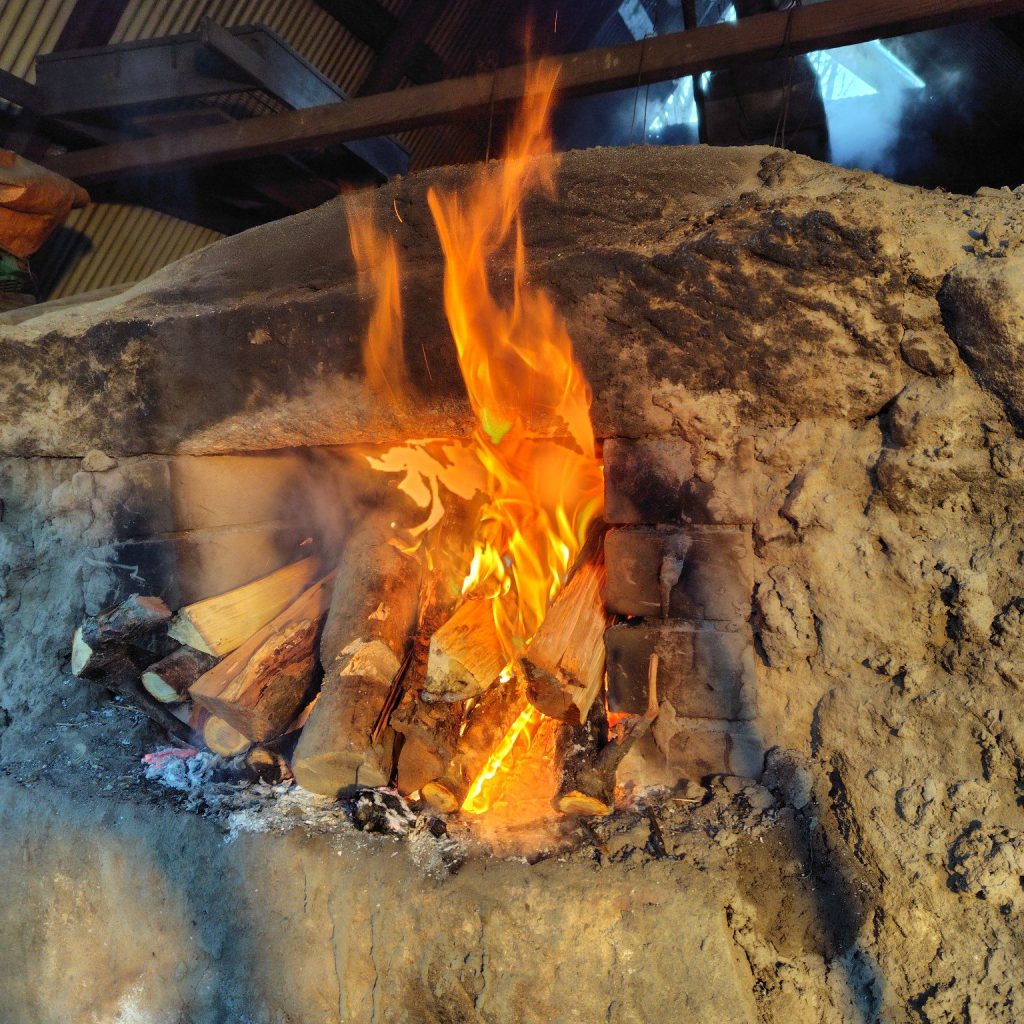 【ネラシ】は炭木が割れないようにゆっくりと窯の中に空気を送ります。